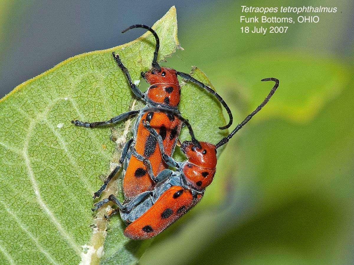 Check patches of milkweed for milkweed beetles, Tetraopes femoratus. A related eastern species